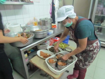南投縣政府和鄉公所補助協會60多個低收老人,每人的餐費60元,在地一些邊緣戶的獨居老人,也被協會納入照顧的對象,目前送餐達130多人。邱慶禧說,經費不足的差額就要四處去募,為了省錢,還要親自到魚港批購魚貨。