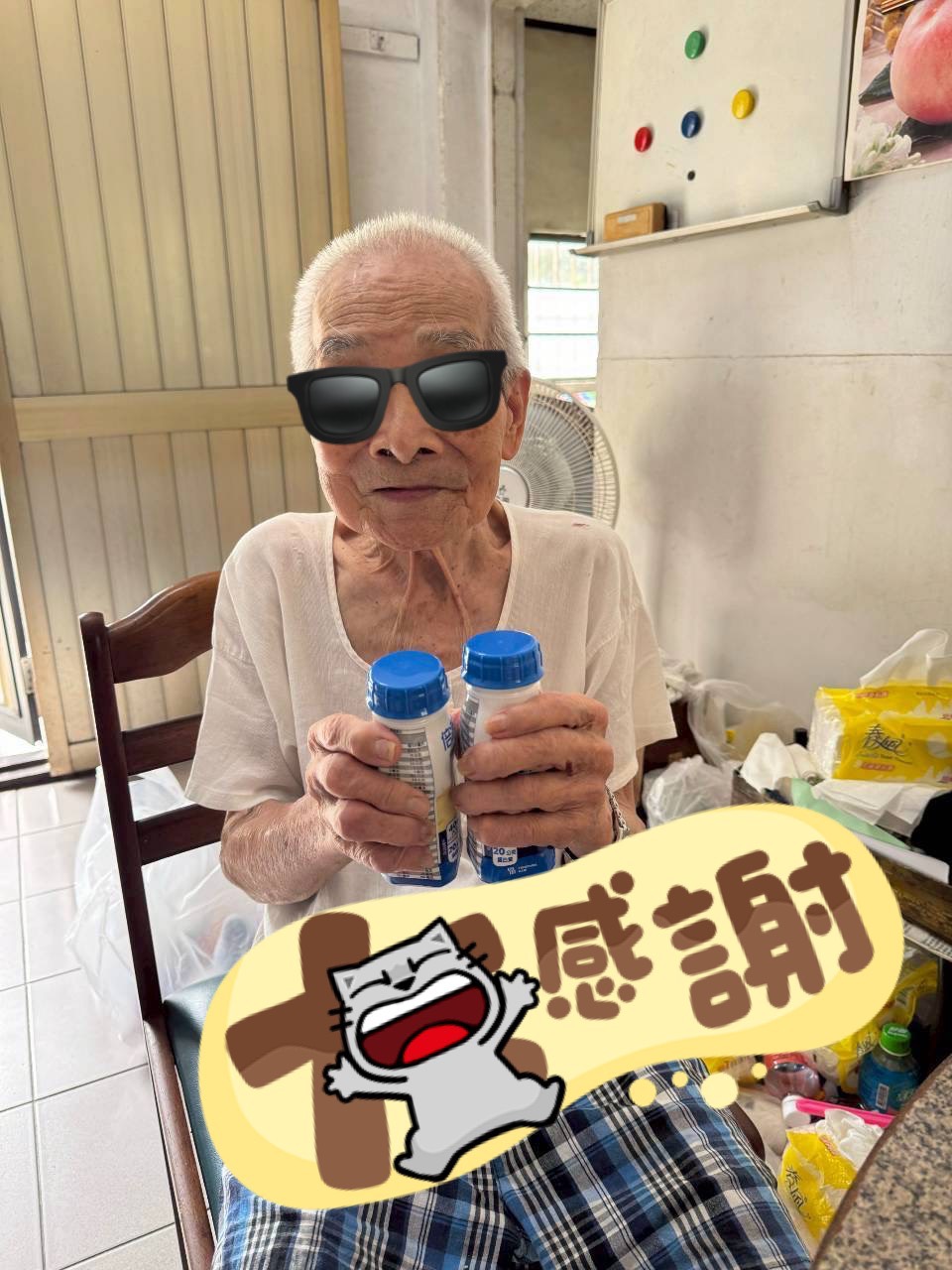 阿龍阿公年邁未婚獨居,牙齒不好而影響了他的消化和營養攝取,每次送餐志工為阿公送餐時,有時會發現阿公跌坐在地板上無法自行爬起,因阿公生活困苦依靠老人年金生活,所以無法購買昂貴的營養品,感謝費森公司邱總經理捐助,這不僅為偏鄉帶來物質上的支持與精神上的鼓勵,也改善了阿公的生活質量,也讓阿公感受到被關心和重視。